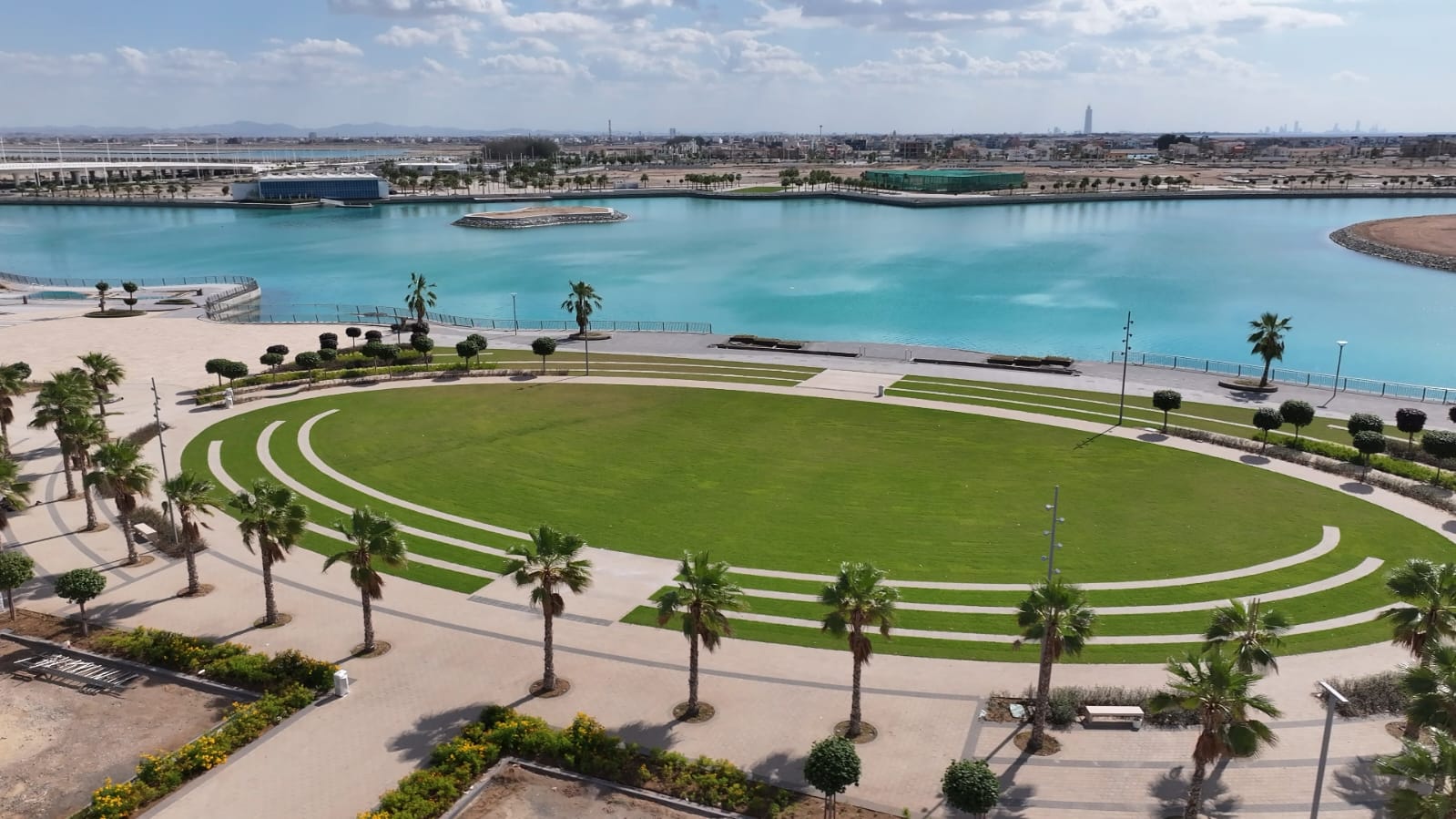 The masterplan is shaped by interconnected waterways and a newly created 12.5-kilometer waterfront, including a 5.5-kilometer waterfront promenade with navigable canals, bridges, marinas, and public parks. Water serves as the primary organizing element, shaping land use, mobility, views, and lifestyle across the destination.