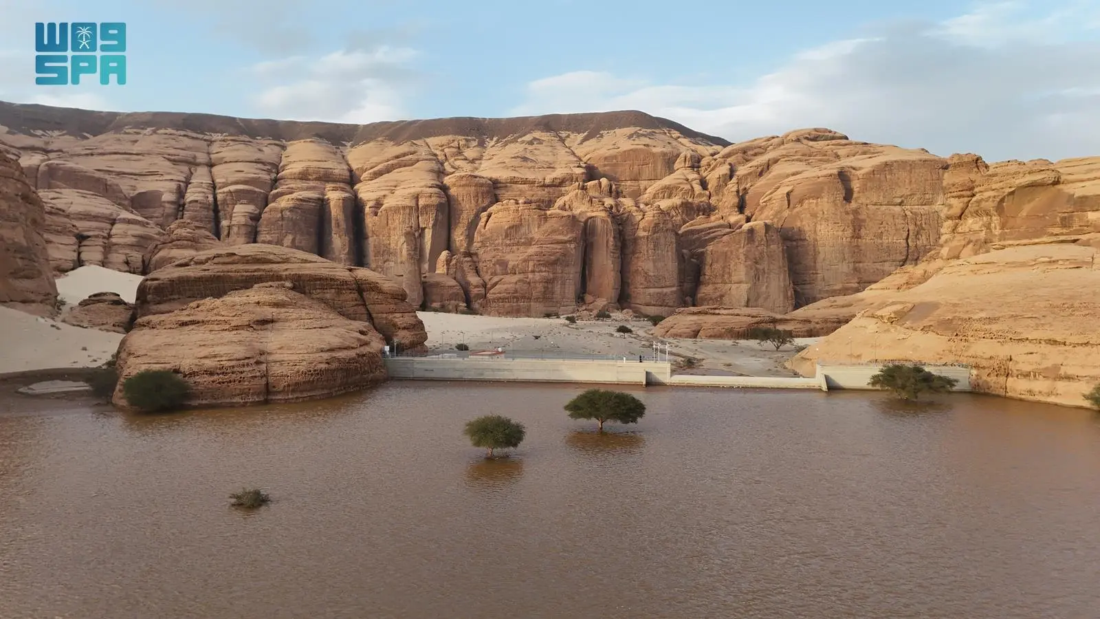 Rain Swells AlUla’s Shallal Dam Amid Stunning Rock Formations
