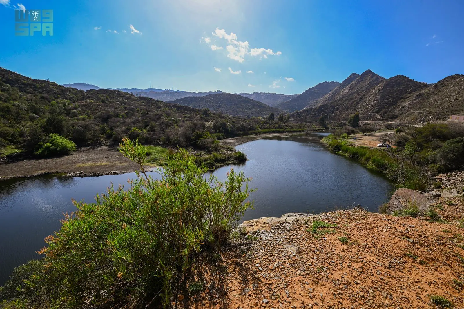 The Saudi Press Agency (SPA) lens captured the smooth flow of water through the valley after the rains, forming clear pools that reflect the purity of the spring atmosphere, making it a suitable destination for family outings and outdoor trips.
