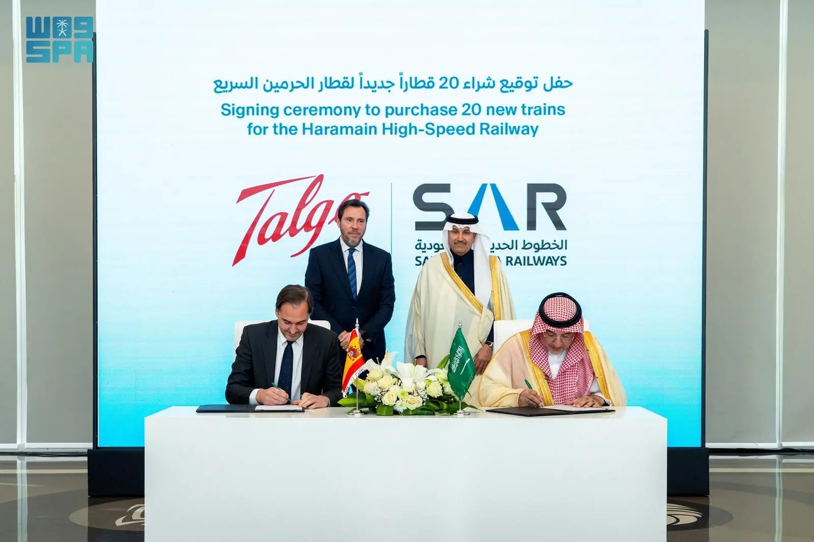 Under the patronage of Minister of Transport and Logistic Services and Chairman of the Board of Saudi Arabia Railways (SAR) Saleh Al-Jasser, and in the presence of Spanish Minister of Transport and Sustainable Mobility Óscar Puente Santiago, Saudi Arabia Railways (SAR) announced the purchase of 20 new trains from Spanish manufacturer Talgo to enhance the Haramain High-Speed Railway fleet.
