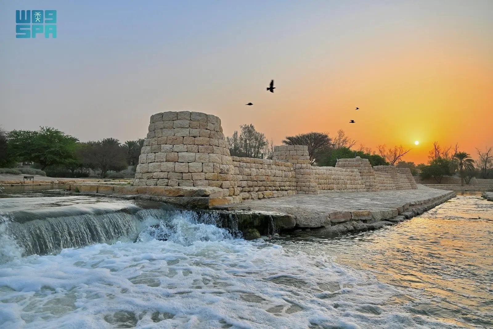 After multiple restorations, including significant work during King Abdulaziz's reign in 1322 AH, the dam site now features a public park with a 10,000-square-meter lake, 4.5 kilometers of walkways, and abundant palm trees.